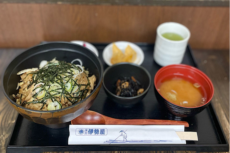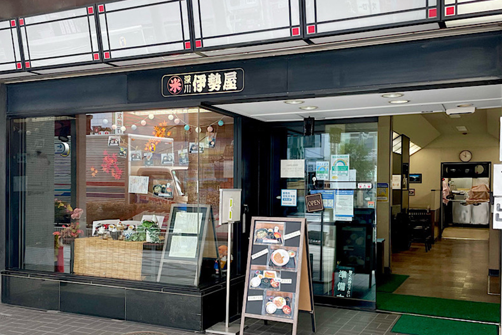 また本店では食事処も併設されており、名物の深川あさりめしや日替わり定食のほか「あんみつ」や「ぜんざい」などの甘味も楽しめるようになっている。