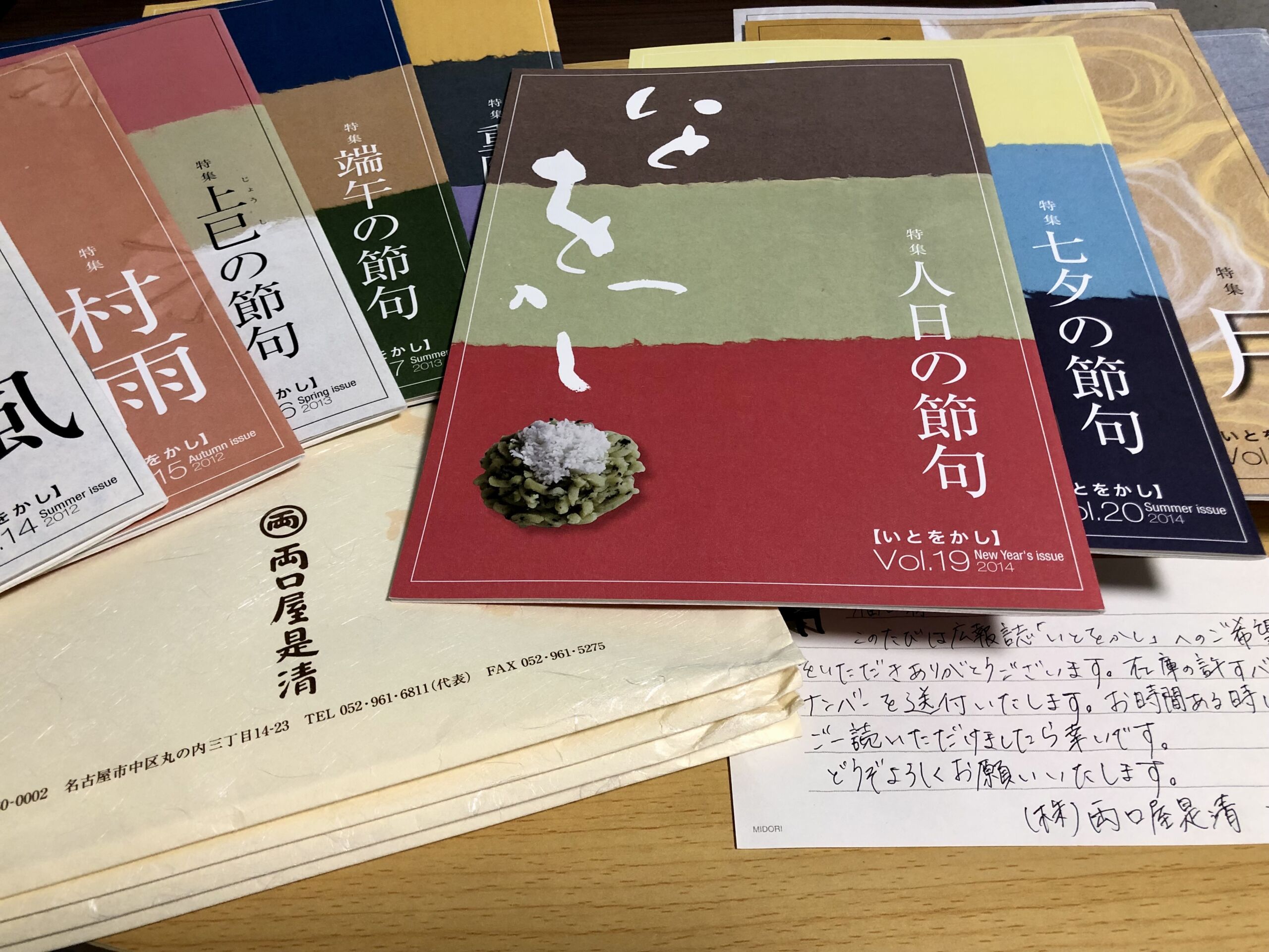 両口屋是清さんへの愛と、日本の歴史や文化への愛が、水前寺公園の湧き水のようにあふれ返る編集部が、恥を忍んで連絡してみたところ、在庫の許す限りのバックナンバーが送られてきました。しかも、広報の近藤さんの直筆レター付きで!