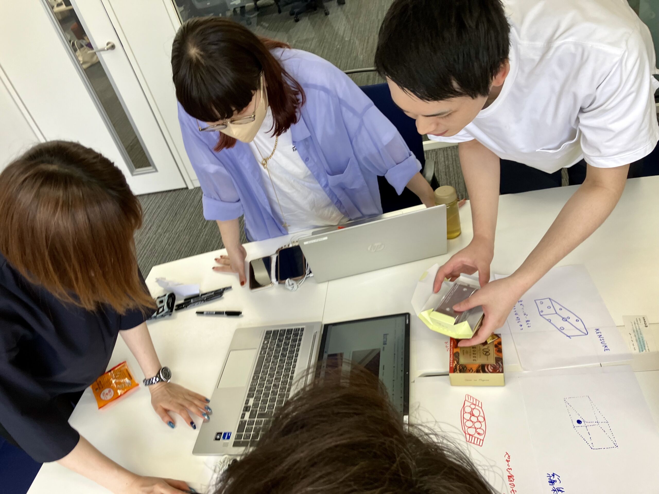 想像力や、それを言語化する力が試される「顔探し選手権」をベースに、情報は商品名のみ!その商品がどんなお菓子かを想像する「お菓子想像選手権」や、箱に包まれたお菓子の原材料、形状などをヒントに商品を想像する「箱の中身はなんだろな選手権」にチャレンジしてきて、新たな気付きを得ました。