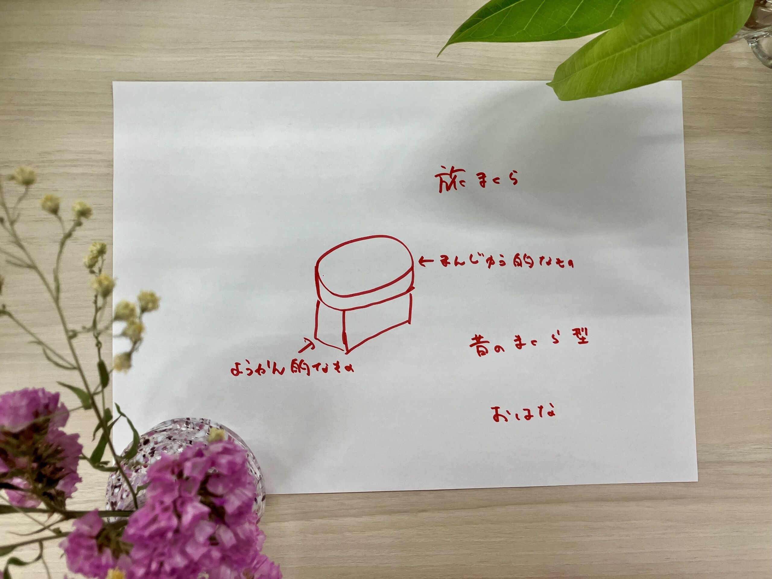 うちの枕、首のところがちょっと窪んでるの。職人さんが餡を包んでギュっと閉じたときの親指が残ってるイメージ。あ。ごまは…どこ行ったんだろう?